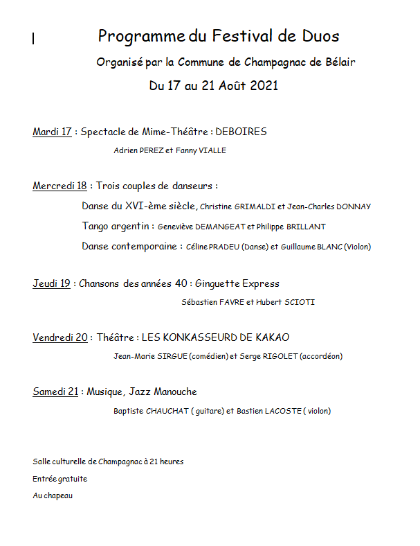 Accueil > Évènements > Culture > Festival des Duos
