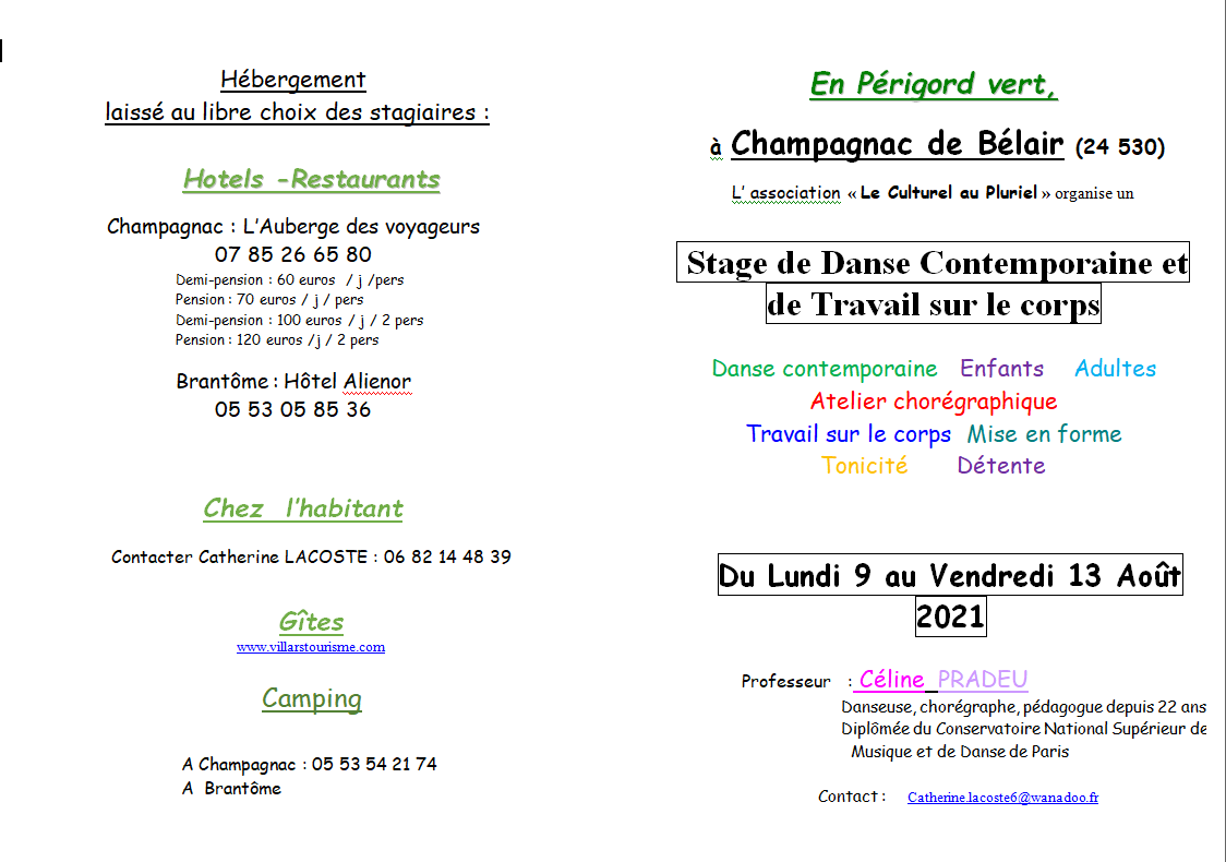 Accueil > Évènements > Danse > Stage de Danse Contemporaine et travail sur le corps